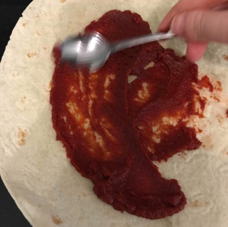 1. Cover your tortilla wrap in tomato paste.